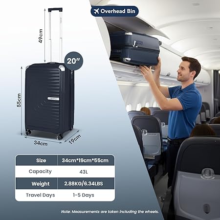 • Dimensions & Capacity: 20-inch trolley with compact design – Length:34cm, Width:19cm, Height:55cm